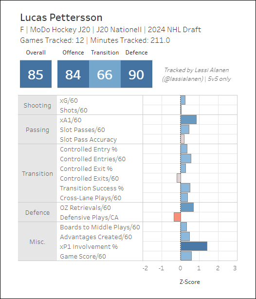 Lucas Pettersson 🇸🇪 has one of the most attractive profiles of the Swedish players available for the #2024NHLDraft. He is a strong two-way center who dominates the slot, creates danger and engages well on defense, transition and offense. pic.twitter.com/9oy63u6NTT