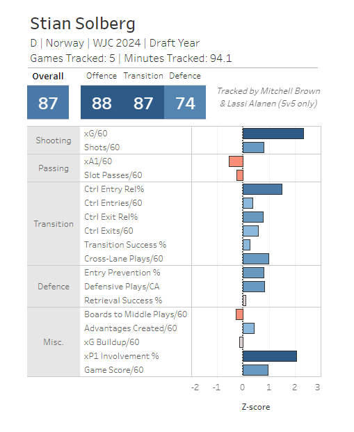 So, these next three profiles on defensemen will all be prospects that I think fit this mold. They are not exactly the same, with different balances of strengths between offense and defense. Today, we'll start with Norwegian defender Stian Solberg.