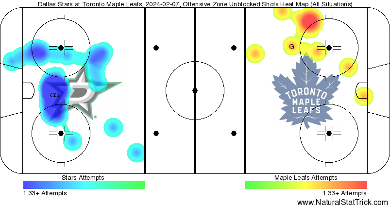 Dallas pulls the goalie, but the Leafs PK this exactly the way they the powerplays (they get the puck and never score).