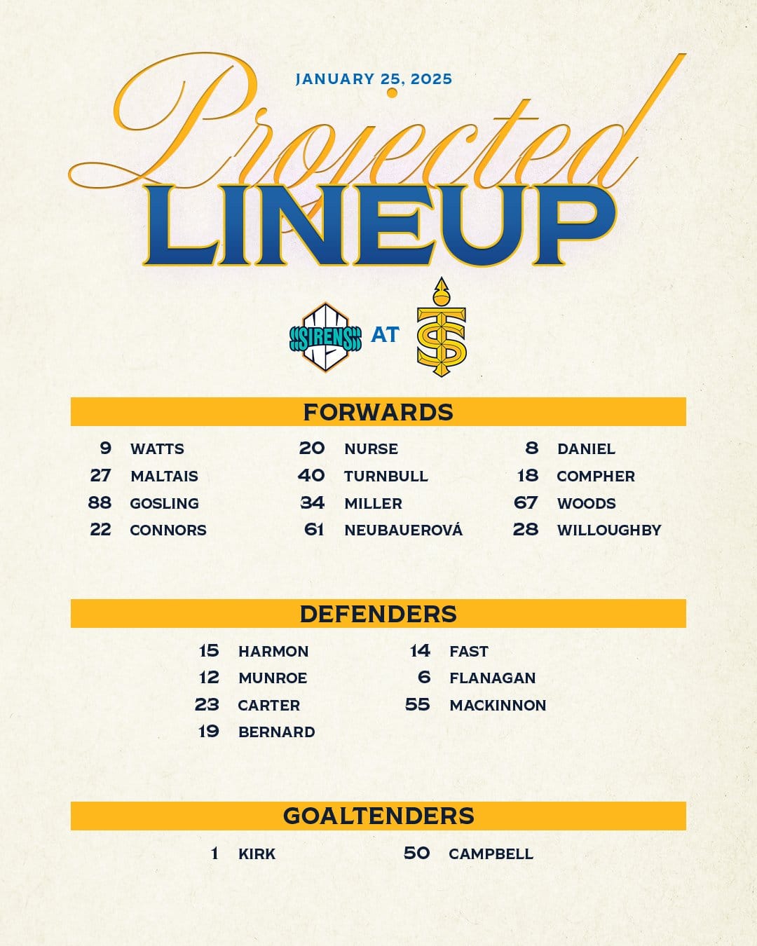 First overall pick Sarah Fillier (Georgetown) will play her first PWHL game in Ontario. She’s one of five players from the province in the Sirens lineup along with Eldridge (Barrie), Jaime Bourbonnais (Mississauga), Ella Shelton (Ingersoll) and Kayle Osborne (Westport). Each player will have 10+ family members and friends in attendance.