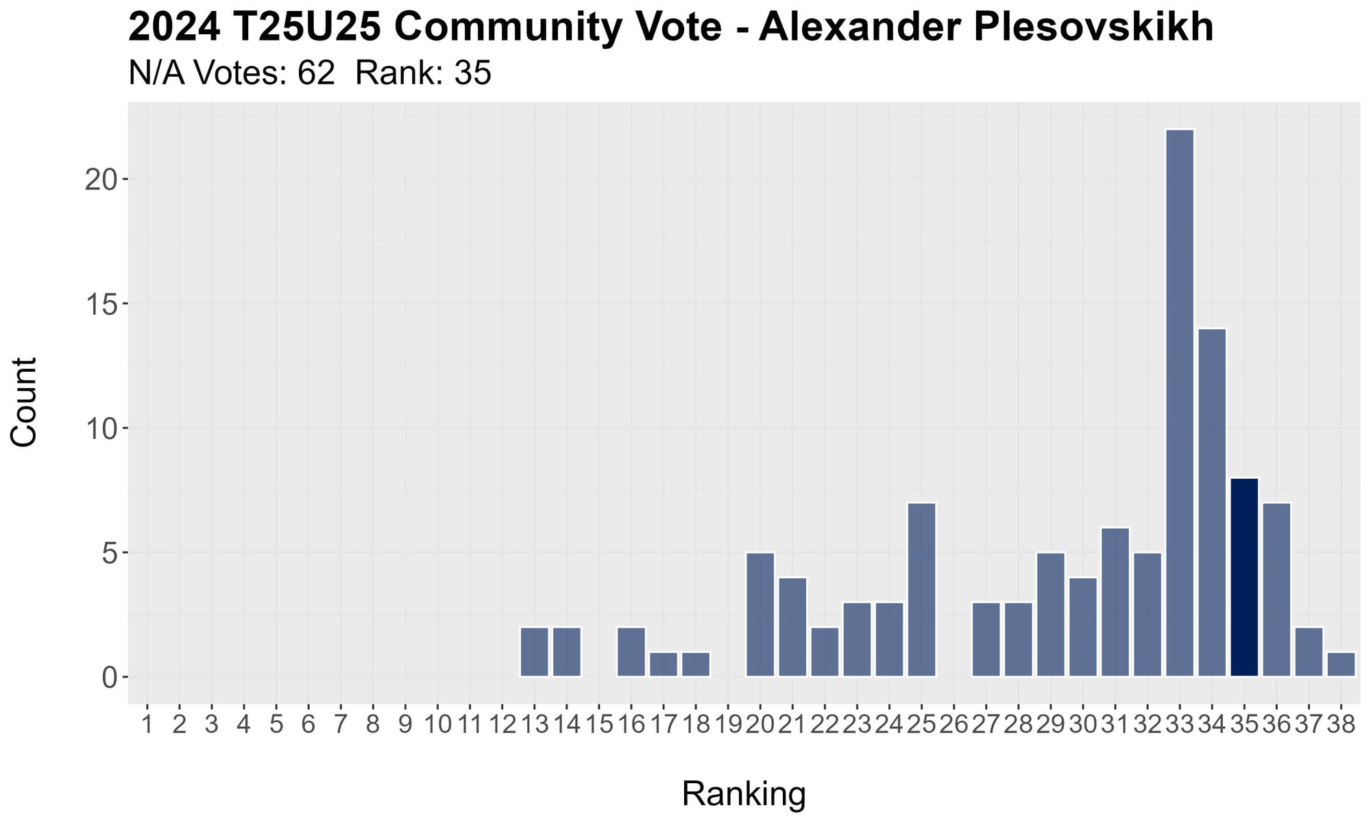 Ranked low on the Official Vote, Plesovskikh got almost no attention for a ranking of 25.04.