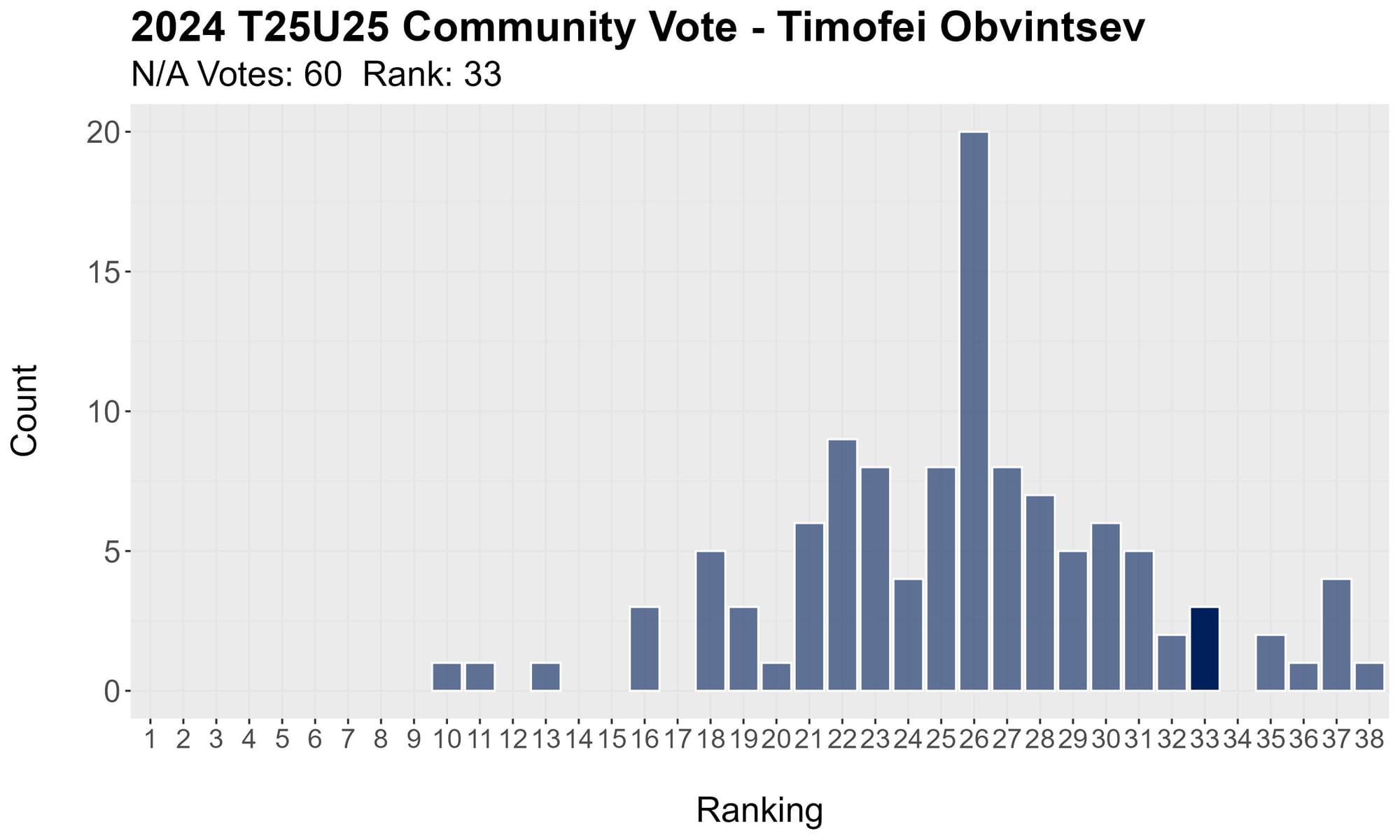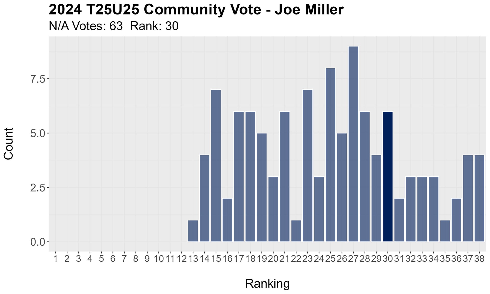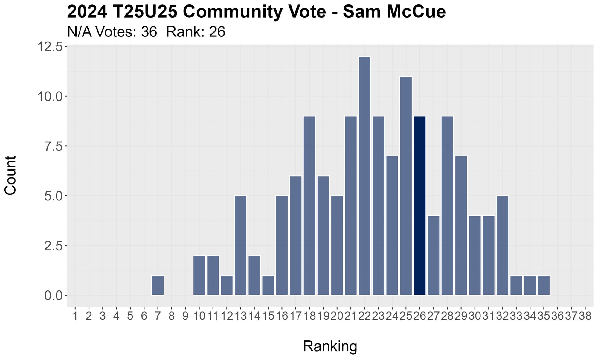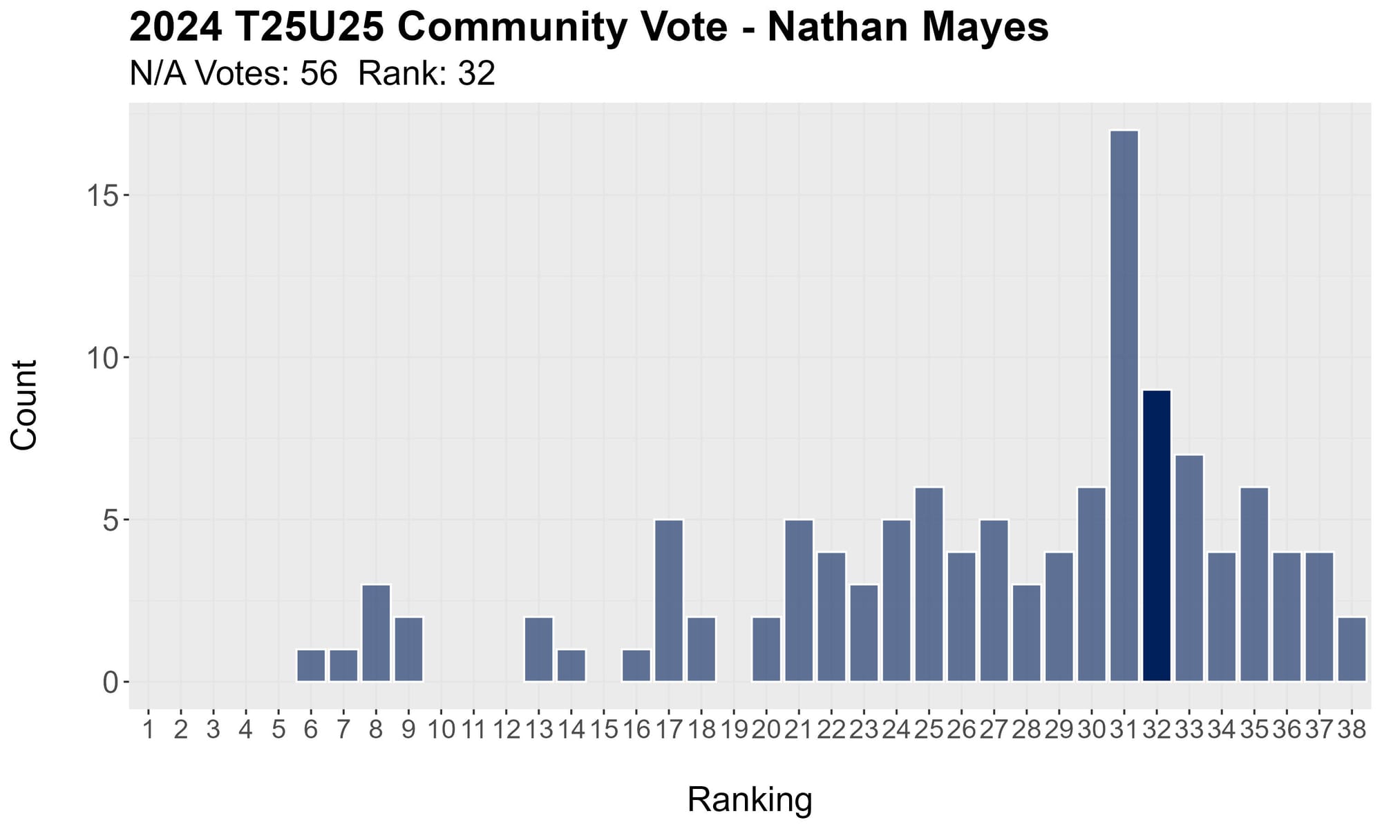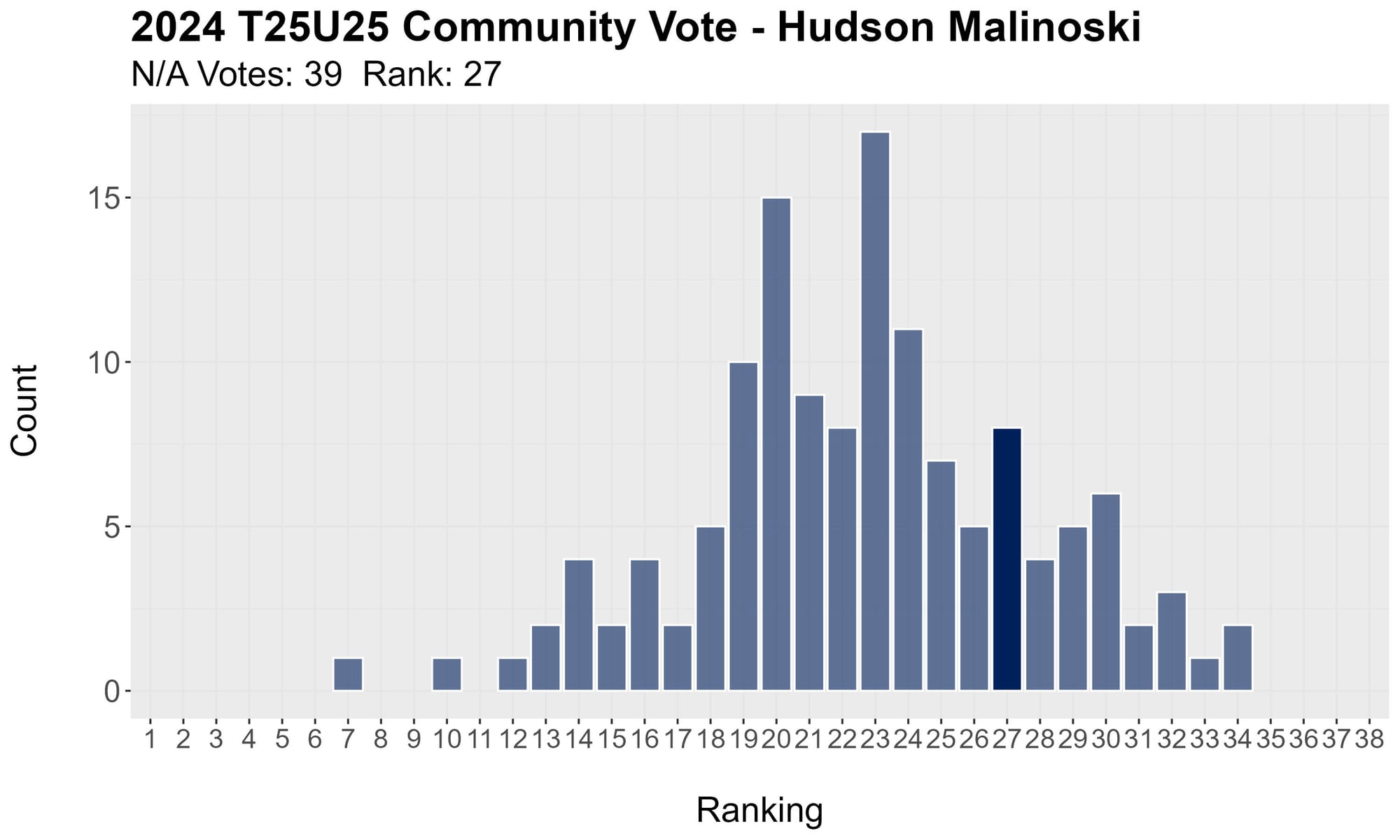 Last year's seventh rounder got enough votes to hit 25.24 in average ranking.