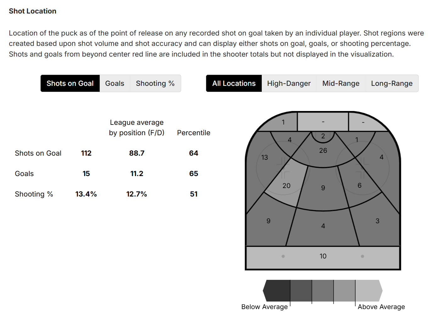 I've looked at a lot of stats and shot plots for a lot of players over a lot of years. And I've noticed a few things. Players almost never change how they shoot. They shoot from the places they shoot from in the volume they shoot, and the only way that changes much is if they are really young or move from a very bad team with no offensive zone time to a team with more. And this needs to be dramatic because – for example – Auston Matthews is Auston Matthews no matter the Leafs team stats. He's in the zone because he puts himself there. For mere mortals, they might be more like the boat that floats on a rising tide. But that tide has to really turn for it to be noticeable.