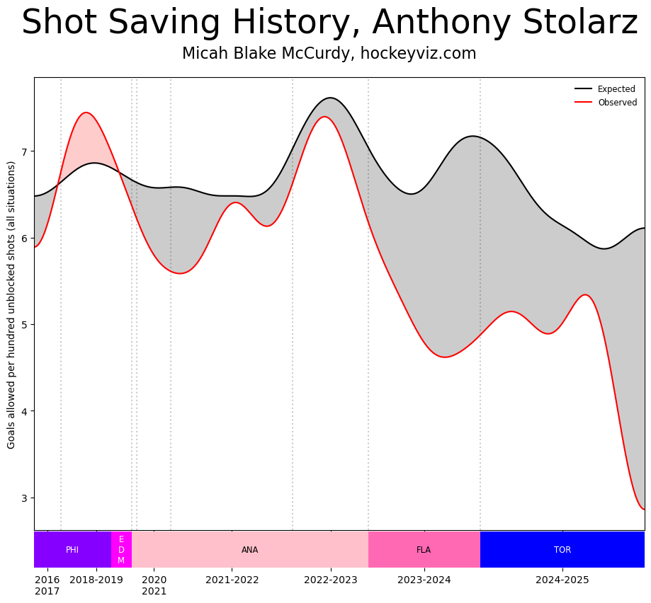 The risk with Stolarz has never been about his performance, it's about the chance he will miss time. That risk grows with age, but it seems very unlikely the Leafs could have got this deal done with this low an AAV for any shorter a term.