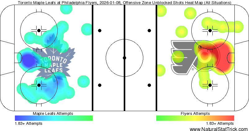 The third was a lot faster if not necessarily involving more shots. And then Scott Laughton tied it up.