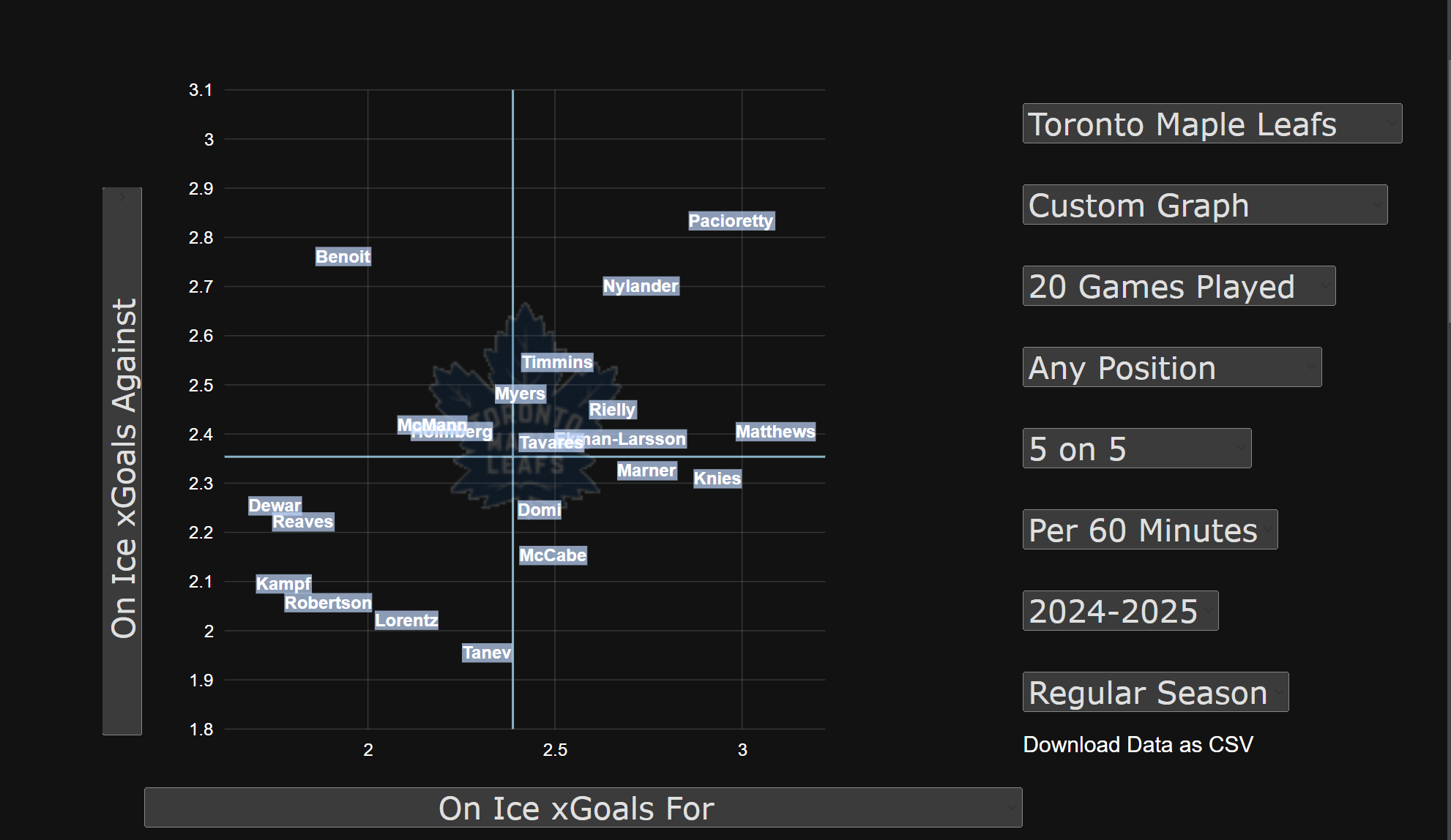 After all of that, the Leafs are the Leafs are the Leafs. And they are winning at five-on-five. It's actually a higher-risk way to do things than a nice solid puck possession style that produces quality offence and good enough defence. And it's not like the Leafs don't do that. They just don't do both on the same shift.
