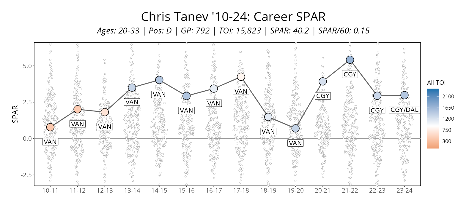 Which is the real Chris Tanev: the good at defence, but offensive black hole player from Calgary or the top pairing guy he was with Dallas? It's always so hard to tell with players that leave a team after years of emotional upheaval to go to a new place where all they care about is short-term winning.
