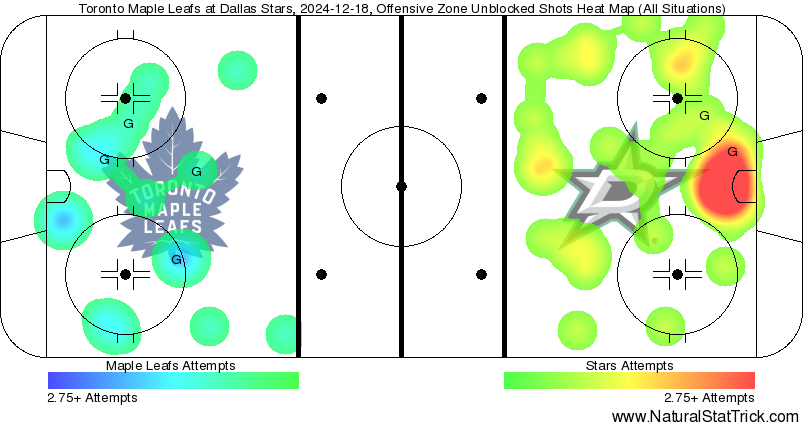 Leafs played a perfect first nine minutes – they had the puck most of the time and Dallas didn't look to interested in trying to interfere with that.