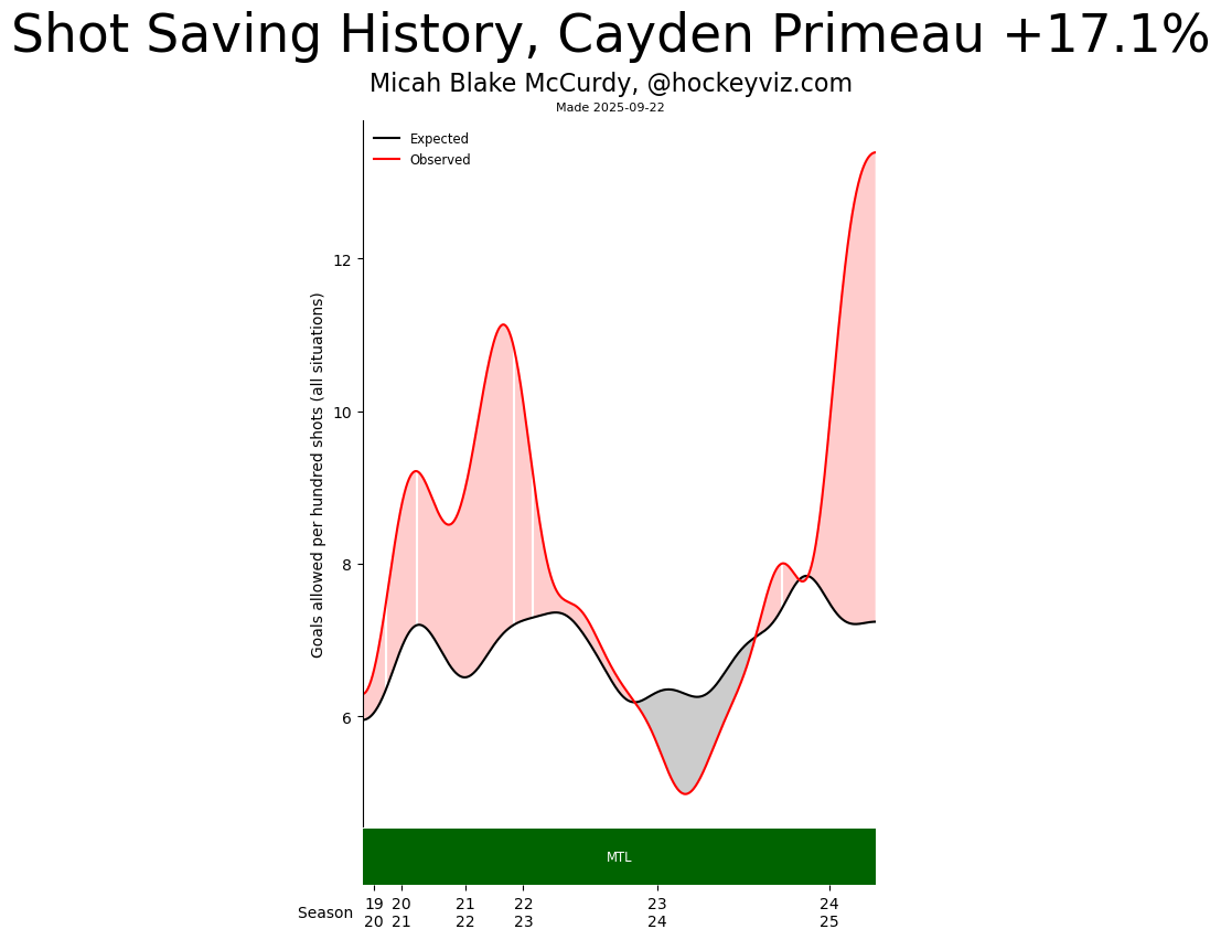 Cayden Primeau, 26, is a goalie, originally drafted by Montréal. He was under contract with the Hurricanes, but they put him on waivers yesterday.