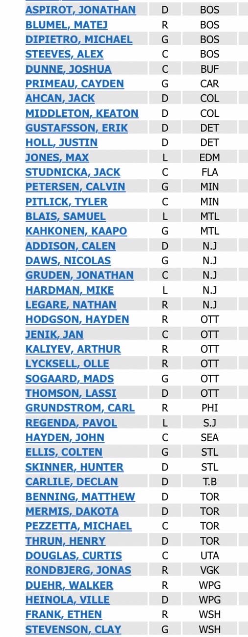 This full list, which you can also find here, https://puckpedia.com/waiver-wire:
