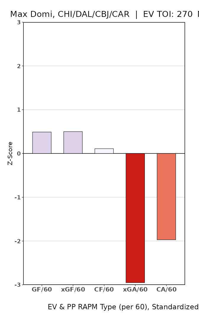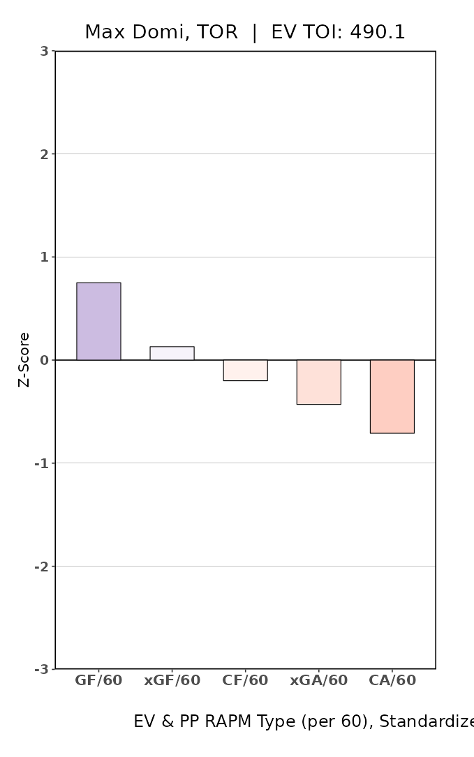 You know who could use a little skew on the usage? John Tavares and co. But they get the opposite, and it shows. Kämpf is the guy really paying the freight for Max Domi, however.