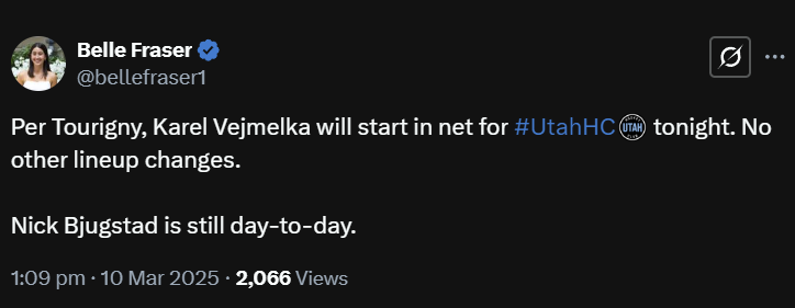 Joseph Woll starts tonight for the Leafs in Utah