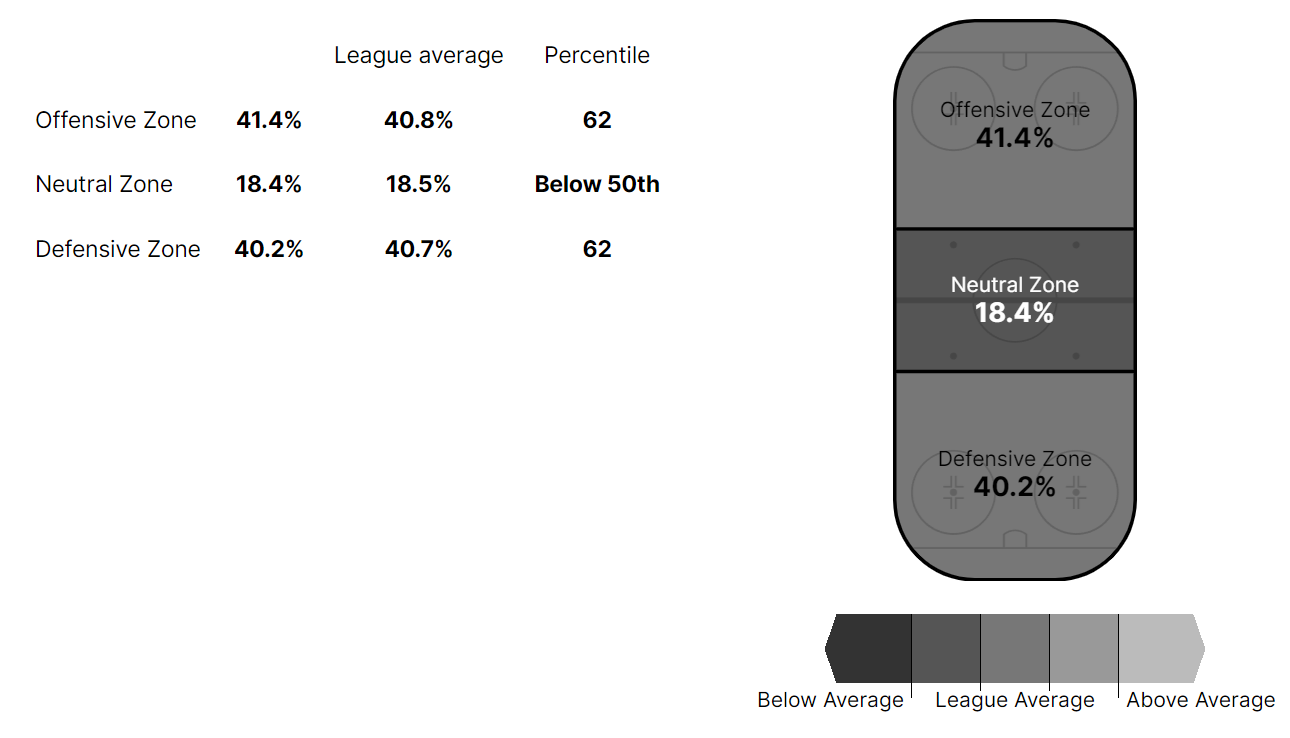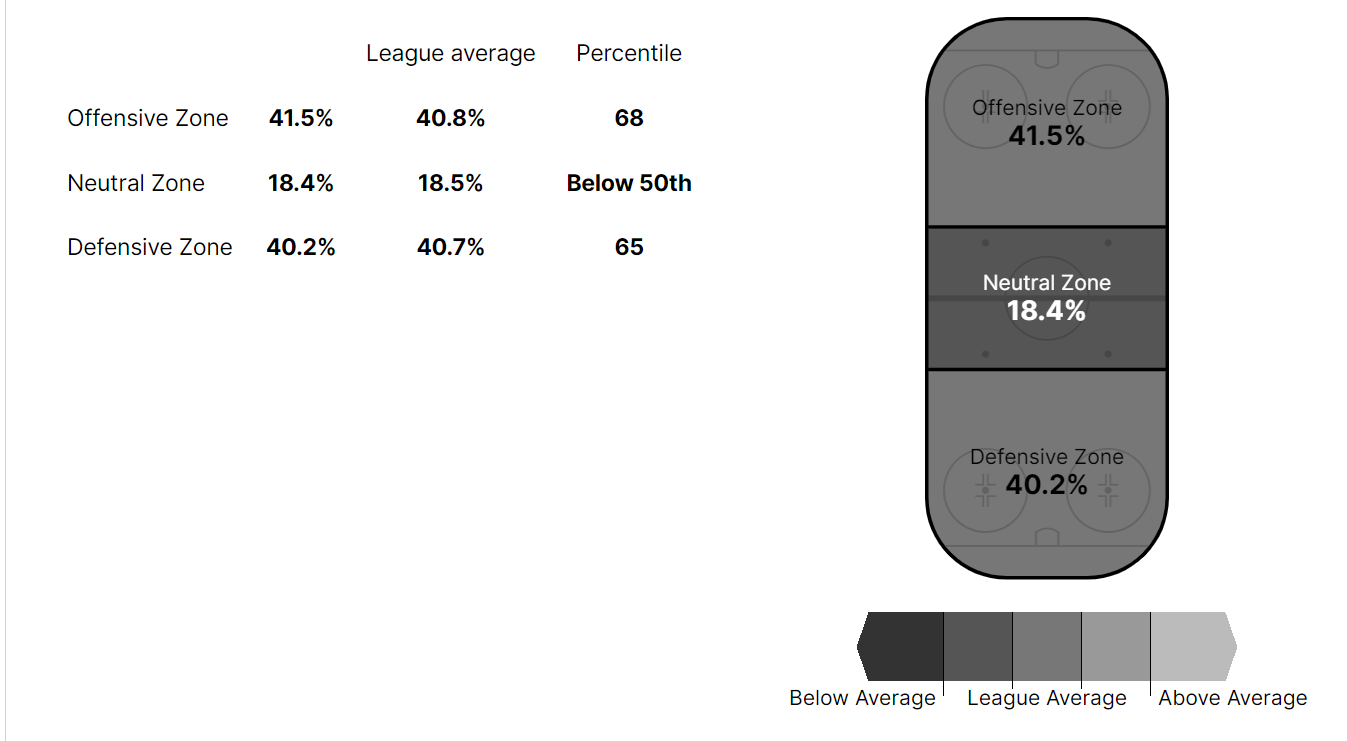 And now for the story that should be very familiar: The Avs have an Expected Goals % just over 51%, and virtually identical to the Leafs. Their Corsi is higher, so I asked NHL Edge who has the better possession numbers: