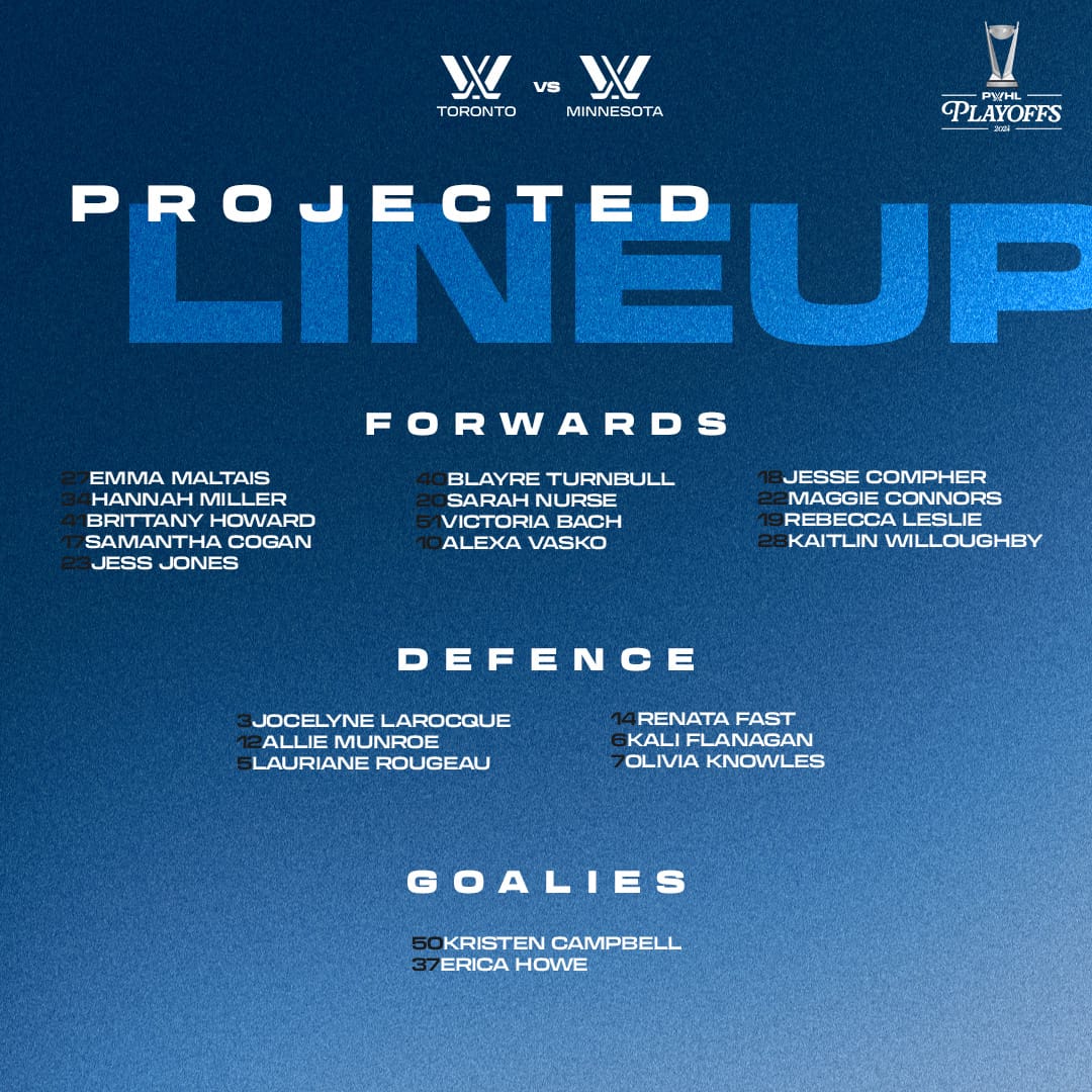 Minnesota has played Maddie Rooney in three games, and she has 65 saves on 66 Shots Against. Nicole Hensley played one game, and she has 16 saves on 20 Shots Against. For Toronto, Kristen Campbell has been in for every minutes, and she has 99 saves on 102 Shots Against.