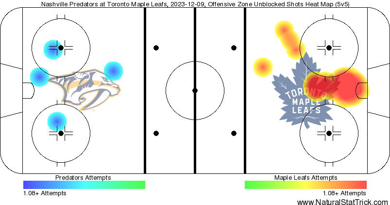 Leafs open strong, getting to the Nashville net with ease.