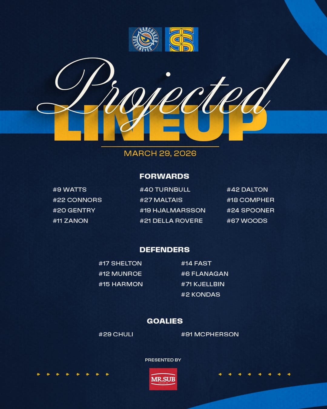 Vancouver's last game was a 2-0 loss to Boston on Tuesday. They now have a Points % of 0.364 and are in seventh place.