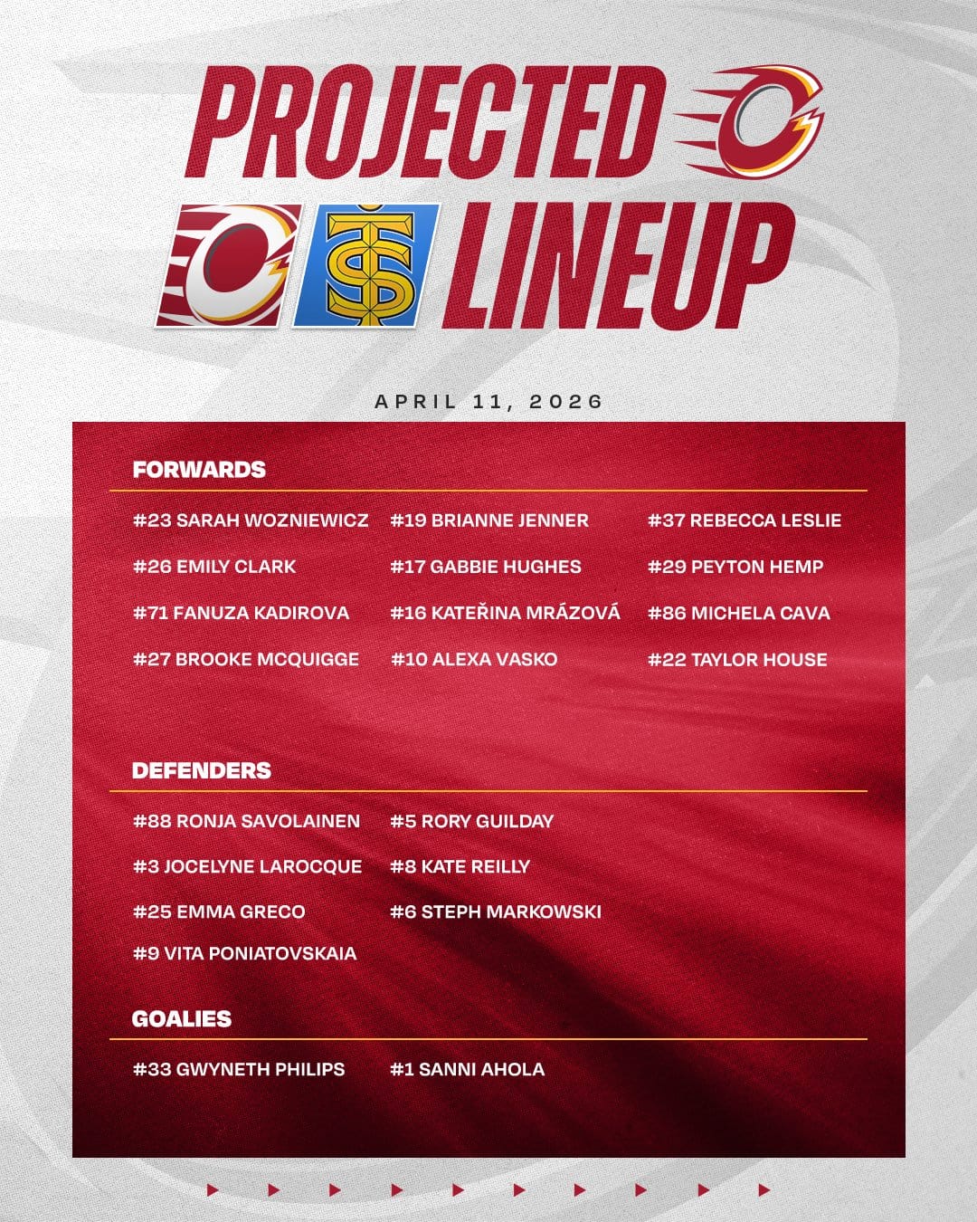 Toronto's last game before their break was a 2-1 regulation win over the Charge in the takeover tour game in Calgary. Since then a few things have happened in the PWHL. All three teams at the top have now clinched a playoff spot, leaving the fourth seat open. It's still technically possible for one of Toronto or Ottawa to overtake the Frost for third, but that's so implausible as to be considered out of the question.