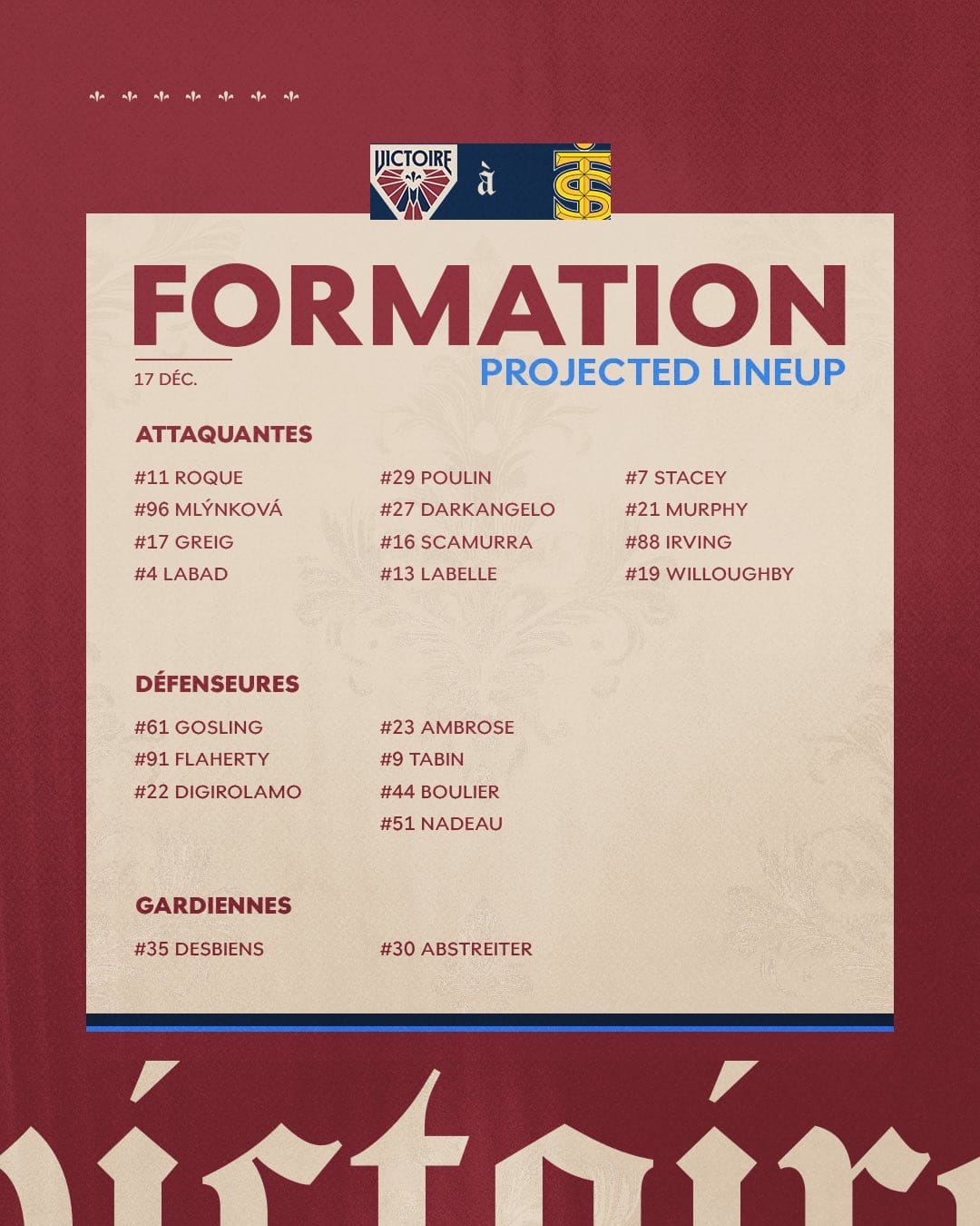 The Sceptres last played a 10 days ago, as did the Victoire, when the Victoire won in regulation 3-1 in Laval over the Sceptres.