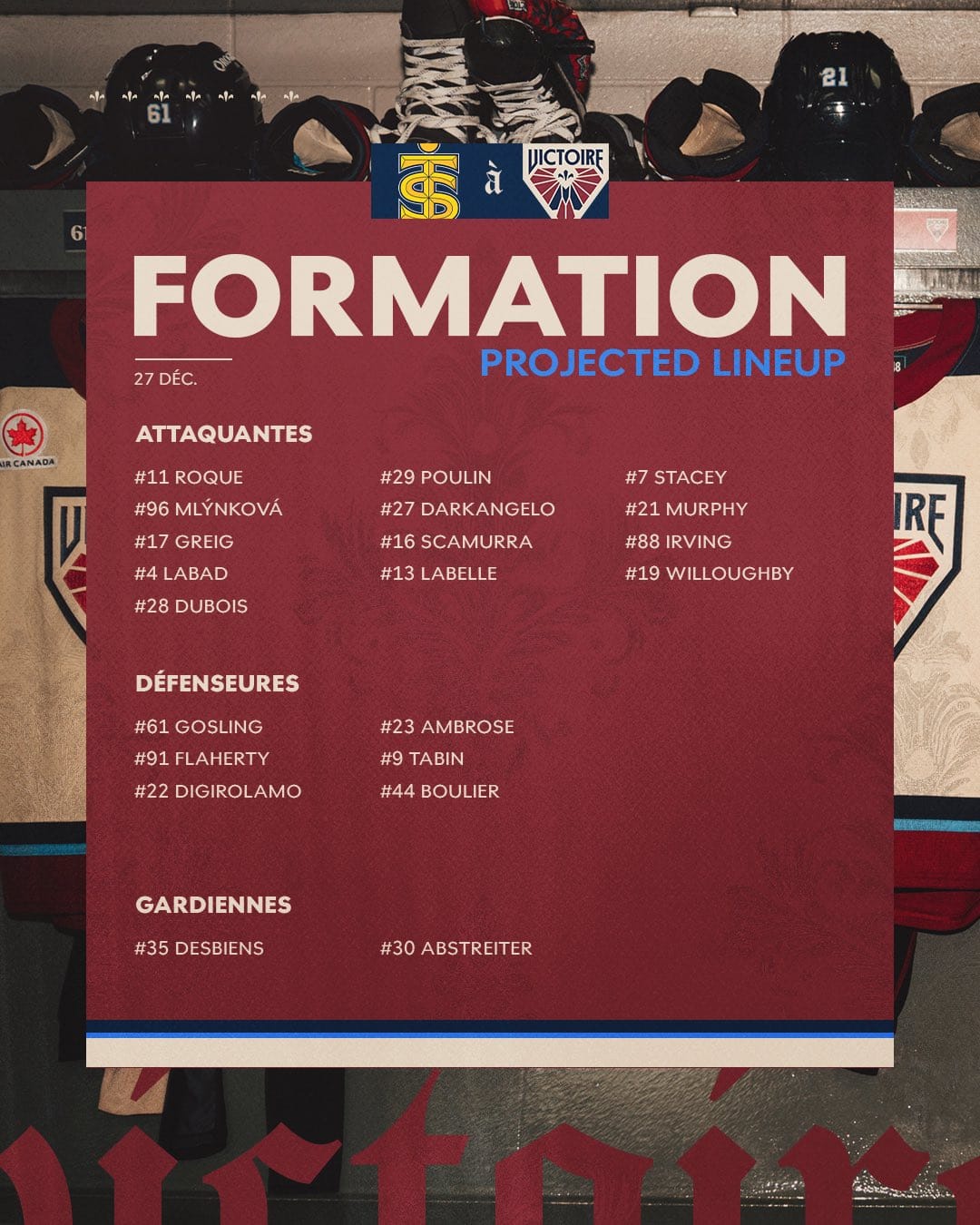 The Victoire are wearing their "whites" today and trying to get the fans to do the same. Patrik Laine and his wife are doing the ceremonial puck drop.