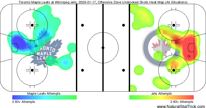 That looks modestly okay because it's all-situations, but the Leafs rarely had the puck at five-on-five and did little of interest with it.