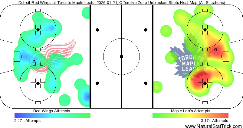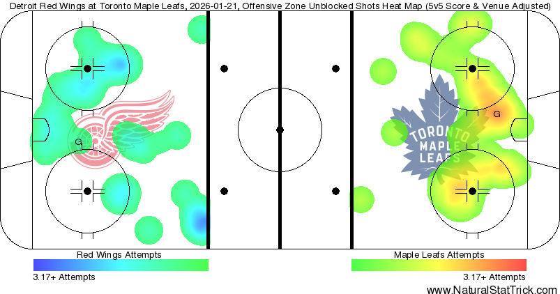 The third period involved a lot of playing for the tie late in the game and a dominating performance by Detroit that got them zero goals. The Leafs conceded the field pretty much non-stop in what sure looks like worrying about losing more than trying to win.