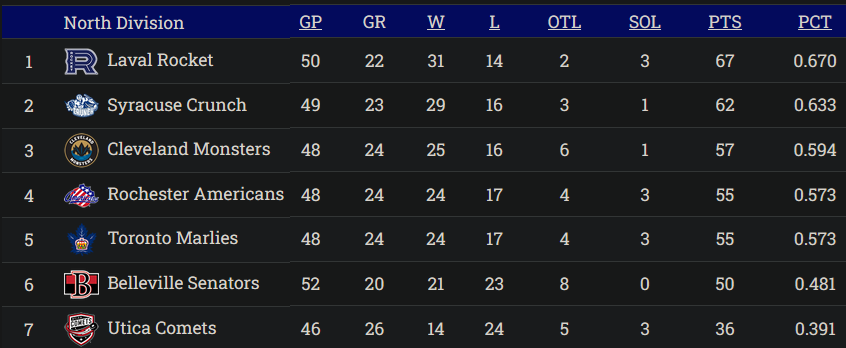Here are the current standings in the North Division and as you can see, defeating the Monsters this weekend is critical to get points and vault above them.